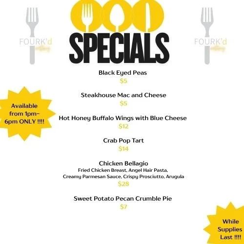 Fourk’d eatery menu